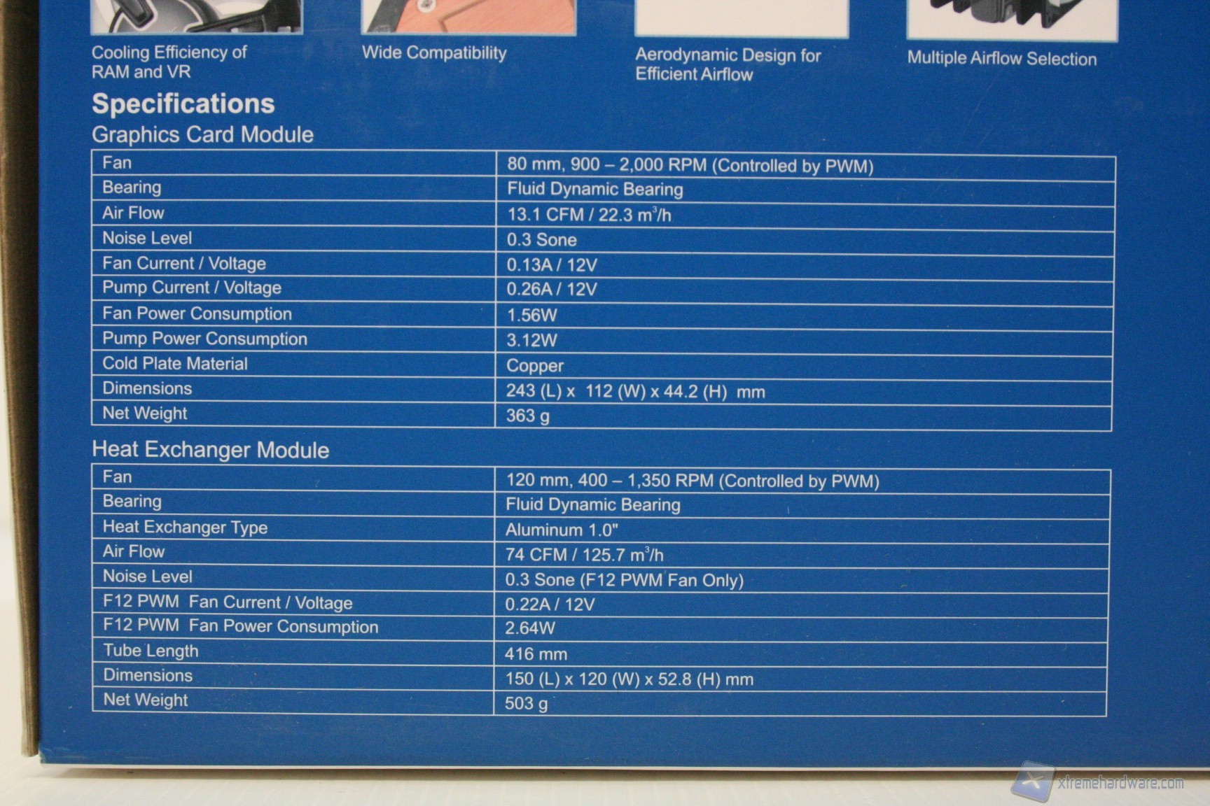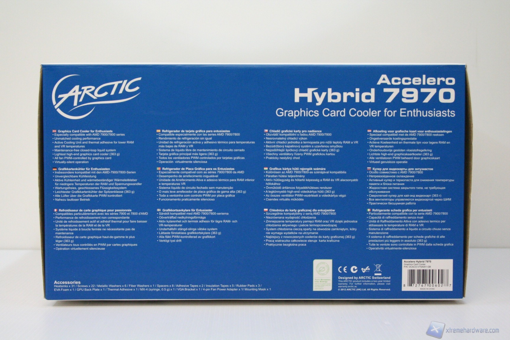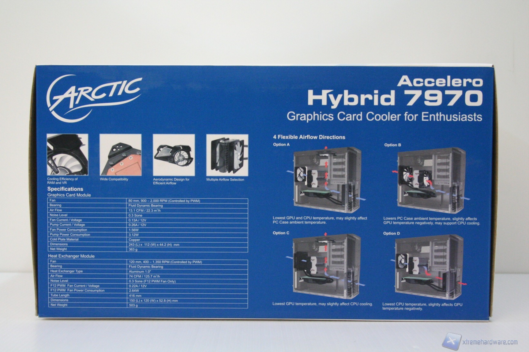 La confezione esterna in questo caso è atipica, rispetto allo standard Arctic cooling, per via del fatto che presenta, strano a dirsi, una scatola di cartone. Generalmente, infatti, le soluzioni di questo marchio erano imballate in una semplice plastica protettiva trasparente; sarebbe opportuno che Arctic Cooling standardizzasse le confezioni a favore della soluzione adottata in questo prodotto, standard ma molto comoda.