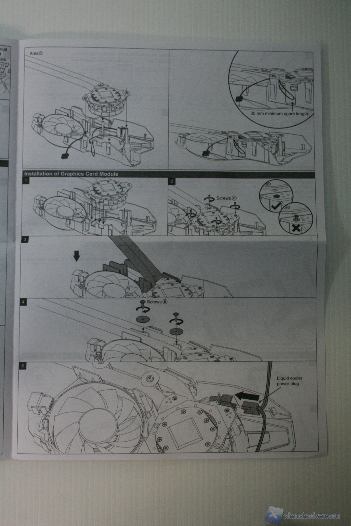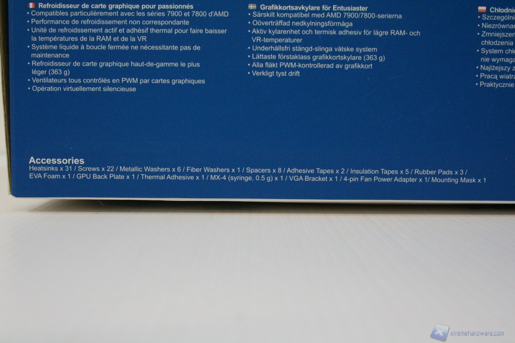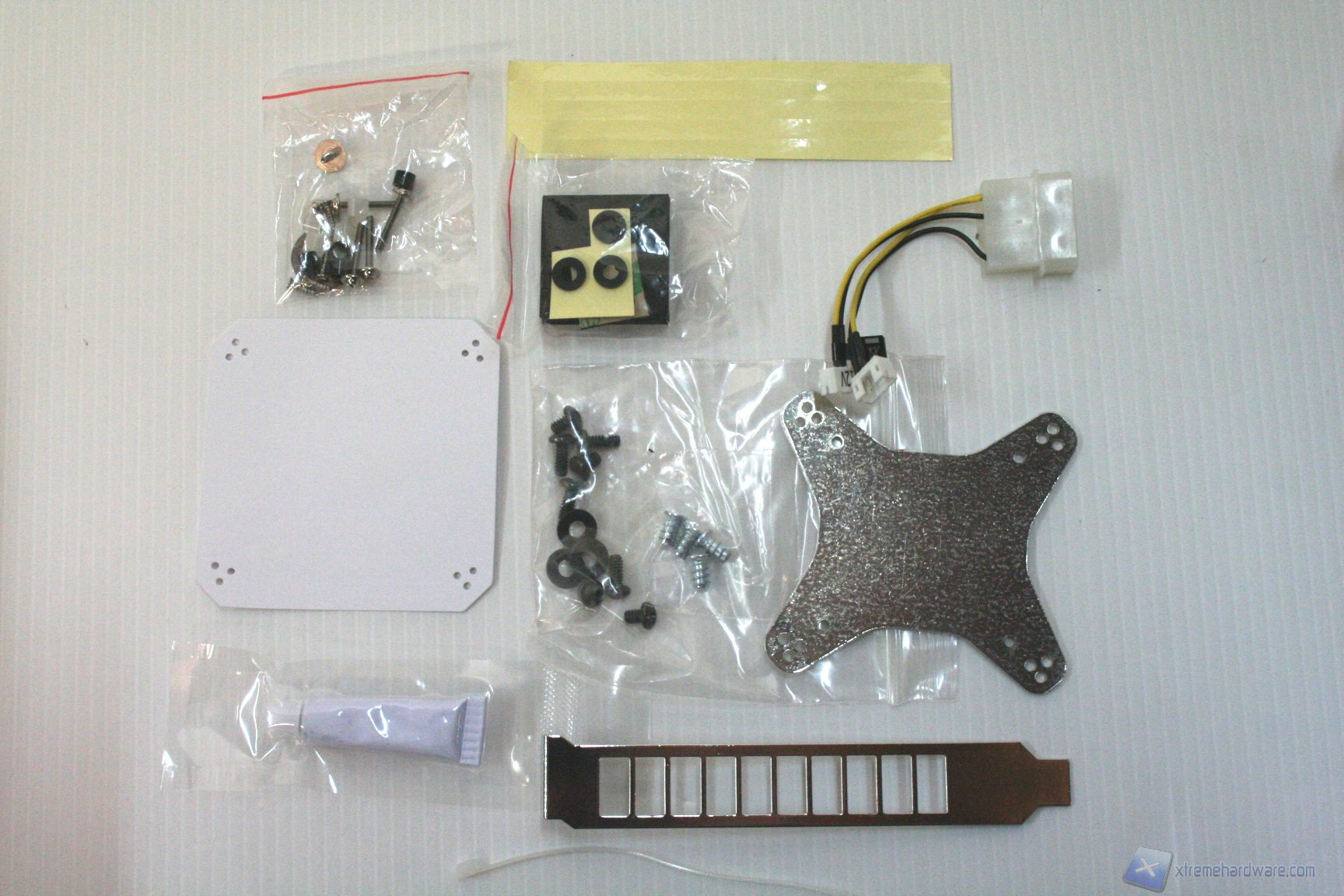 L’imballo interno ricorda moltissimo le soluzioni Antec, Asetek e Corsair, per via del fatto che il produttore principale dell’unità è appunto Asetek, che poi conferisce in licenza i propri prodotti nel mercato OEM. C’è un confezionamento interno con del materiale riciclabile e le componenti, a differenza delle precedenti soluzioni, sono ordinate molto bene. In particolar modo ora i piccoli dissipatori passivi sono ben riposti, mentre precedentemente erano inseriti nella confezione di plastica, che una volta rimossa portava alla loro caduta. Il bundle è decisamente ricco e completo; vediamolo in foto: